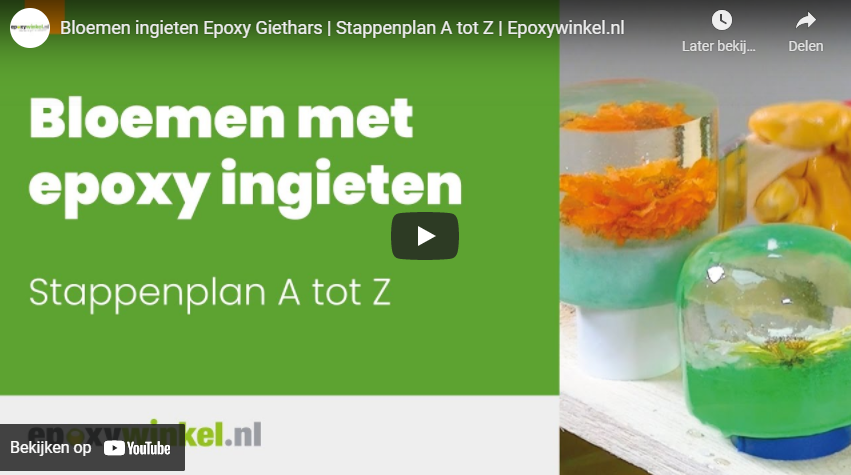 Een van de leukste dingen die je kunt doen met epoxy is gedroogde bloemen in epoxy gieten! Hierdoor bewaar je je prachtige pareltjes voorgoed én heb je een bijzondere eyecatcher in huis. Welke bloemen je ook kiest, het eindresultaat zal niet onopgemerkt blijven in je interieur. Dus verzamel alle benodigde spullen en ga met ons aan de slag. We hebben een handige video voor je geplaatst op YouTube. Daarnaast vertellen we je in deze blog uitgebreid hoe jij jouw bloemen in epoxy giet.