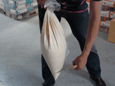 Giet vervolgens de inhoud over op de vloer of in een emmer. Zodra de zak geopend is, adviseren we om het restant in een emmer te bewaren.